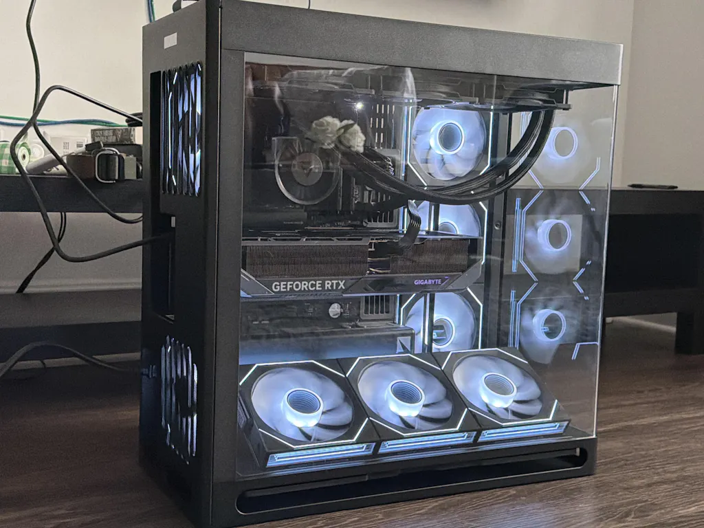• Enhanced thermal performance with custom ventilation, supporting up to 11 x 140mm fans and 420mm radiators on top and side.